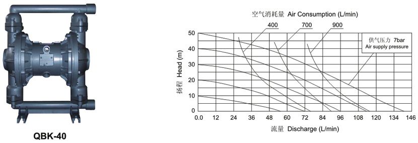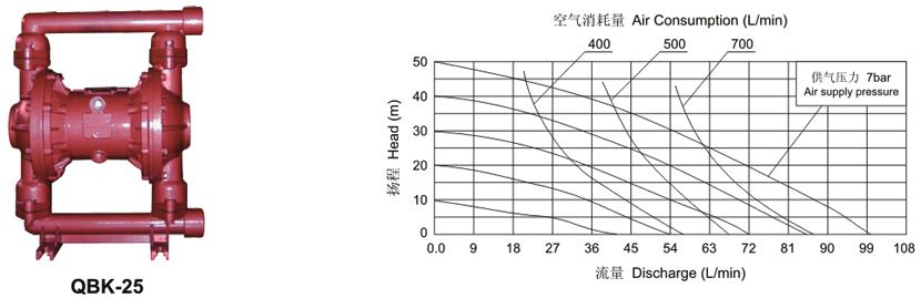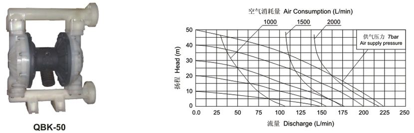 3、揚程、流量可通過氣閥開度實現(xiàn)無級調(diào)節(jié)(氣壓調(diào)節(jié)在1~7bar之間):
