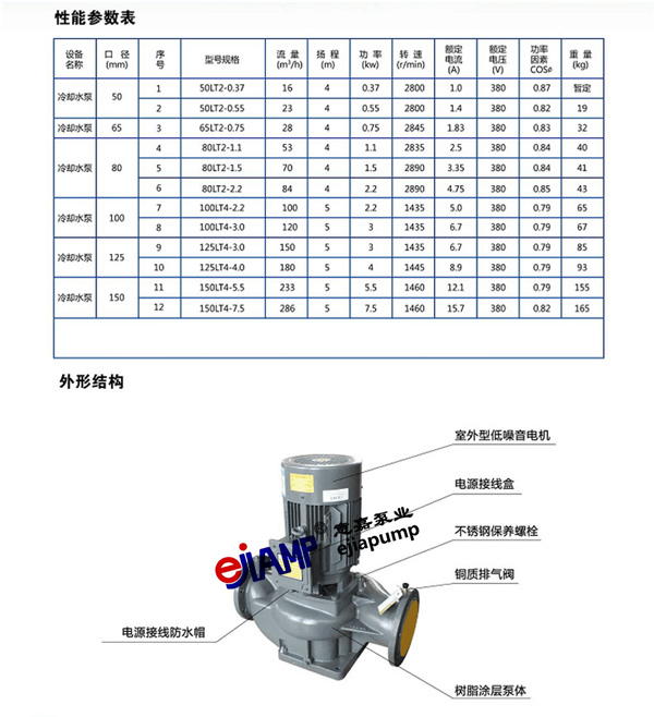 冷卻塔水泵 冷卻塔管道泵冷熱水循環(huán)鍋爐泵LT,LP系列,多種型號(hào)可選 產(chǎn)品型號(hào):
