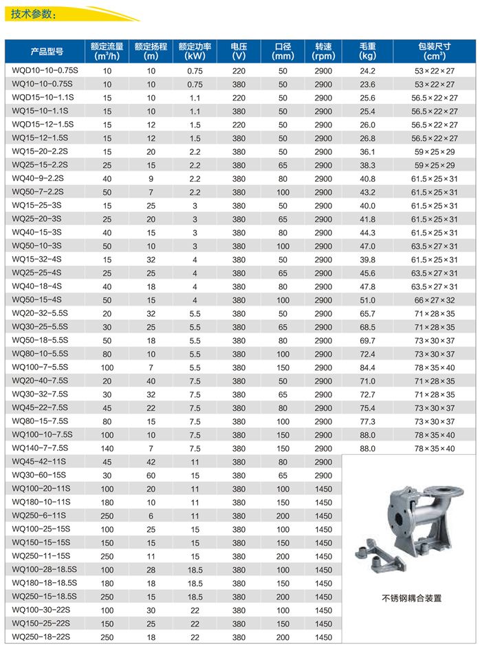 1、國(guó)標(biāo)法蘭WQ(D)-P全不銹鋼精密鑄造污水污物潛水電泵采用不銹鋼精密鑄造外殼,具有耐腐蝕,環(huán)保型、揚(yáng)程高、流量大等特點(diǎn)。