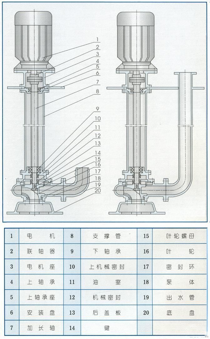 9、泵有單管安裝和雙管安裝兩種,支承件有圓盤和方盤安裝。