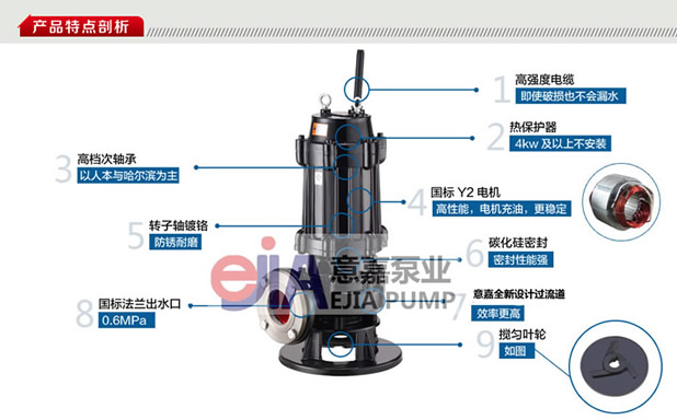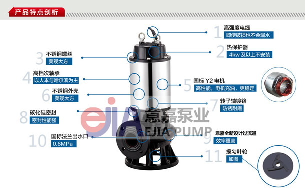 三、JYWQ自動攪勻潛水排污泵產(chǎn)品特點: