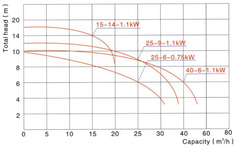 3.對于沒有浮子開關(guān)結(jié)構(gòu)的水泵,當(dāng)水泵完全被浸入水中時,水泵起動。如電機沒有完全被浸入水中或在超過40℃的水溫中運行過長時間,電機將停運。當(dāng)電機線圈溫度過冷時,熱保護裝置自動轉(zhuǎn)。