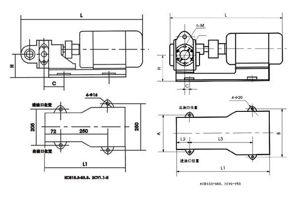 KCB18.3-200、2CY1.1-12齒輪式輸油泵配帶管螺紋口的腰形法蘭;其余泵不配帶法蘭,當(dāng)用戶需要配帶法蘭時(shí),應(yīng)在訂貨中注明。