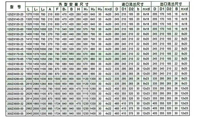 | 50ZX15-60 | 15 | 4.2 | 60 | 6.5 | 1.3 | 2900 | 7.5 |