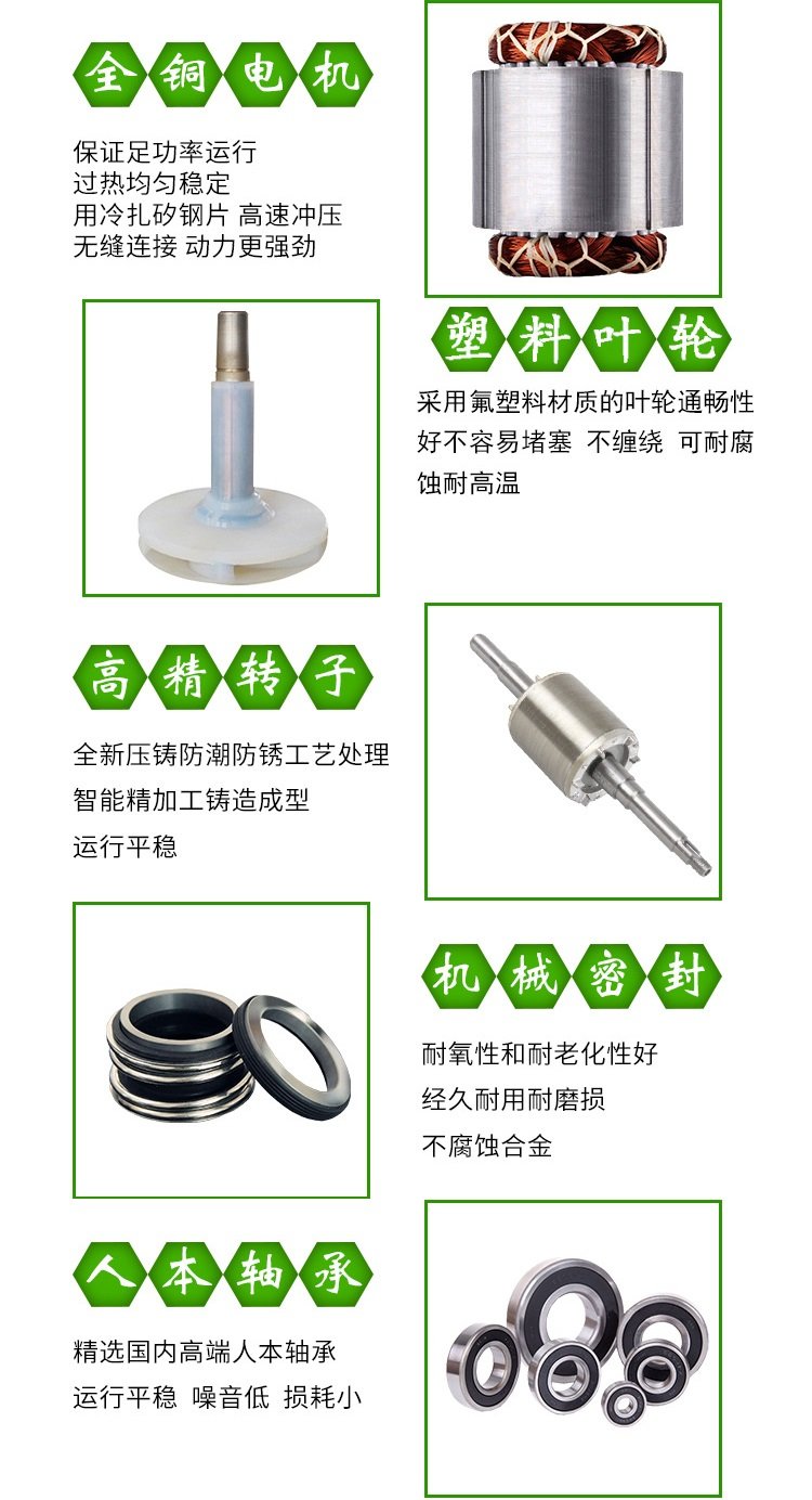 EJIAMP/意嘉品牌FZB系列氟塑料自吸泵是按國際標準并結(jié)合非金屬泵的工藝設(shè)計制造。泵體采用金屬外殼內(nèi)襯氟塑料,過流部件全部采用氟塑料合金制造,泵蓋、葉輪等均用金屬嵌件外包氟塑料整體燒結(jié)壓制而成,軸封采用外裝式波紋管機械密封,靜環(huán)選用99.9%氧化鋁陶瓷(或氮化硅),動環(huán)采用四氟填充材料,其耐腐耐磨密封性極好。泵的進出口均采用鑄鋼體加固,以增強了泵的耐壓性。實際使用顯示,該自吸泵具有耐腐、耐磨、耐高溫、不老化、機械強度高、運轉(zhuǎn)平穩(wěn)、結(jié)構(gòu)先進合理、密封性能嚴格可靠、拆卸檢修方便、使用壽命長等優(yōu)點。